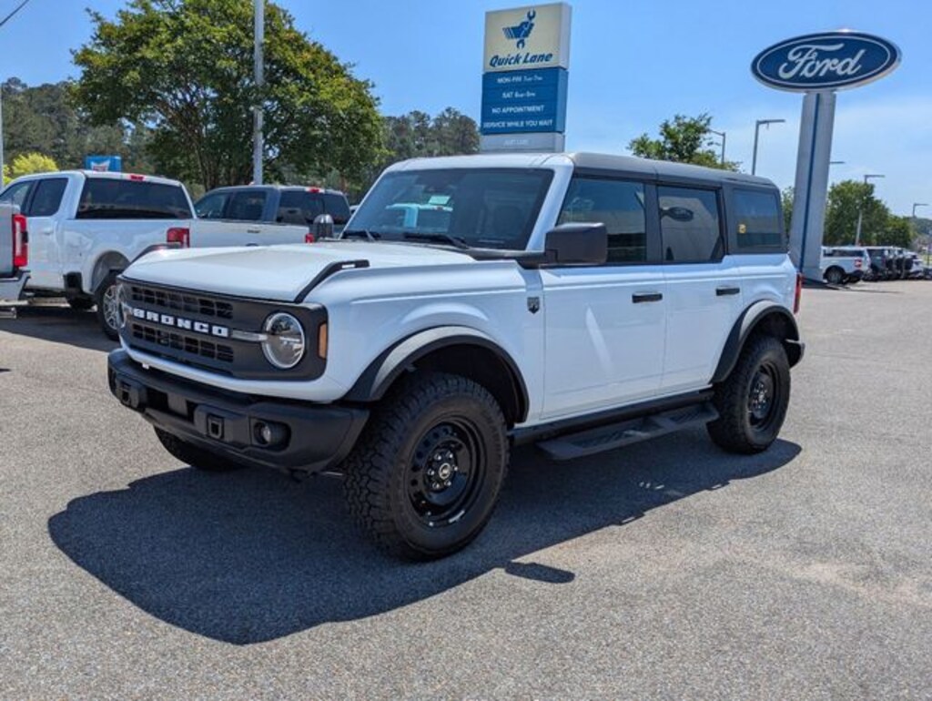 Black Diamond Package (Auxiliary Switches, LED Fog Lamps, Powder Coated Steel Front and Rear Bumpers, Rock Rails, Washout Capable Rubberized Flooring, and Wheels: 17" Black High Gloss-Painted Steel), Equipment Group 222A Mid Package (2-Door Intelligent Access with Lock/Unlock, AM/FM Stereo, Ambient Footwell Lighting, Cloth Bucket Seats, Connected Navigation, Driver and Front Passenger Illuminated Sliding Visor Vanity Mirrors, Dual Smart Charging USB Ports, Dual-Zone Electronic Automatic Temperature Control, Front Row Heated Seats, Pro Power Onboard - 400W, Rear Parking Sensors, SiriusXM with 360L, SYNC 4, and Wheels: 17" Carbonized Gray-Painted Aluminum), Ford Connectivity Package (1-Year Included), 4-Wheel Disc Brakes, 7 Speakers, ABS brakes, Air Conditioning, Alloy wheels, AM/FM radio: SiriusXM with 360L, Auto High-Beam Headlamps, Auto High-beam Headlights, BLIS Blind Spot Information System, Brake assist, Carbonized Gray Molded-in-Color Hard Top, Compass, Delay-off headlights, Driver door bin, Driver vanity mirror, Dual front impact airbags, Dual front side impact airbags, Electronic Stability Control, Emergency communication system: 911 Assist, Exterior Parking Camera Rear, Front and Rear Floor Liners Without Carpet Floor Mats, Front anti-roll bar, Front Bucket Seats, Front Center Armrest, Front License Plate Bracket, Front reading lights, Front Row Top Panels and Door Storage Bags, Front wheel independent suspension, Fully automatic headlights, Hard Top Sound Deadening Headliner, Heated door mirrors, Illuminated entry, Integrated roll-over protection, Lane-Keeping System, Low tire pressure warning, Occupant sensing airbag, Outside temperature display, Overhead airbag, Overhead console, Panic alarm, Passenger door bin, Passenger vanity mirror, Power door mirrors, Power steering, Power windows, Pre-Collision Assist with Automatic Emergency Braking, Radio data system, Raptor-Style Running Board, Rear-View Camera, Rear-Window Defroster and Washer, Remote keyless entry, Security system, Speed control, Split folding rear seat, Steering wheel mounted audio controls, Tachometer, Telescoping steering wheel, Tilt steering wheel, Traction control, Trip computer, and Variably intermittent wipers.